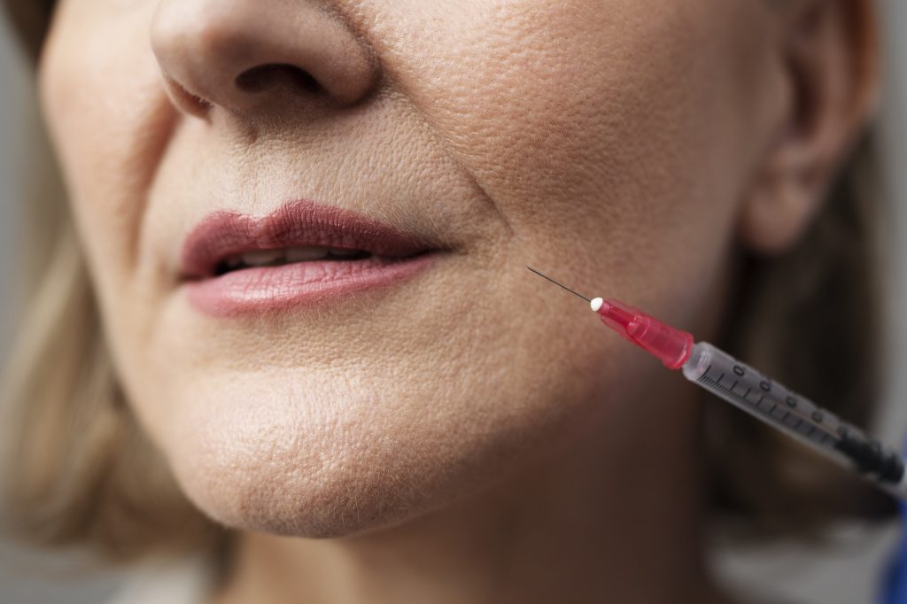 A medical professional injects a gel-like substance into the skin at the appropriate depth.